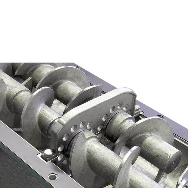 Sikkerheten er prioritert høyt med et dobbelt sikkerhetssystem som automatisk bryter strømmen dersom mateskruene blir blottlagt under bruk. Det avtagbare blandekammeret gir rask adgang for rengjøring og vedlikehold, og holder nedetiden så kort som mulig.